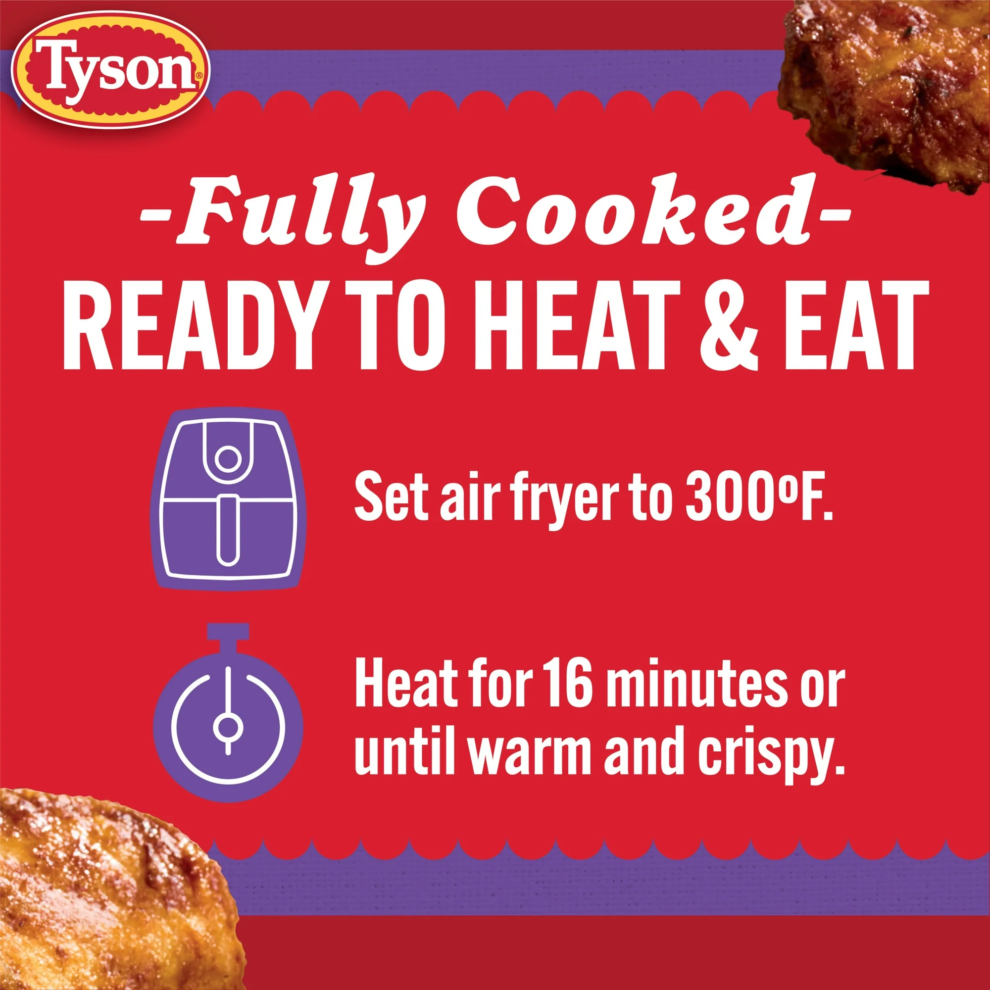 - One 22 oz package of Tyson Any’tizers Honey BBQ Seasoned Chicken Wings